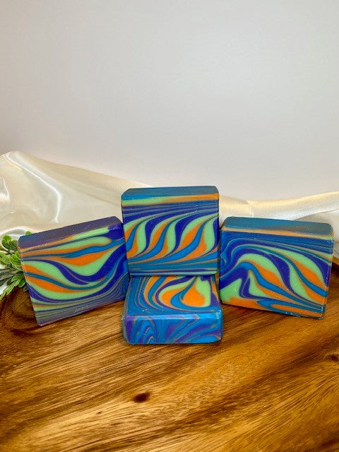 Ingredients: Pig tallow, coconut oil, olive oil, avocado oil, castor oil, distilled water, lye, kaolin clay, skin-safe colorants and fragrance