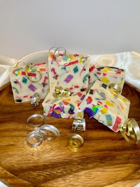This is confetti soap. Made with my base recipe plus cuttings from other soaps.